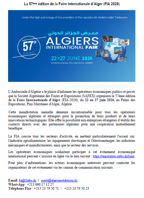 l'Algérie aux manifestations économiques à l'étranger au titre de l'année 2024, l'Algérie prendra part au Salon International de